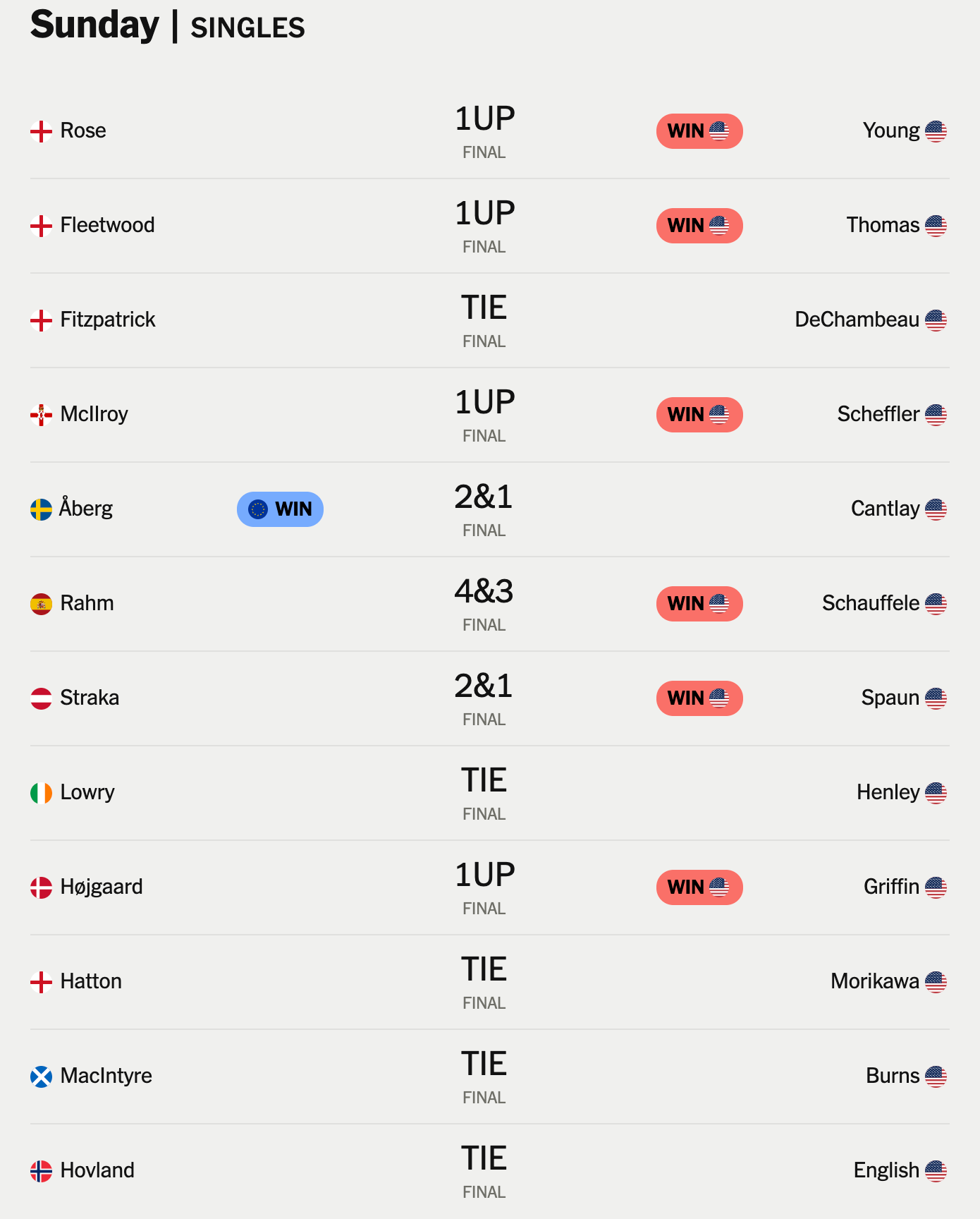 The US put together the most impressive final day in Ryder Cup history. They nearly ran the table on Sunday’s 12 singles matches.